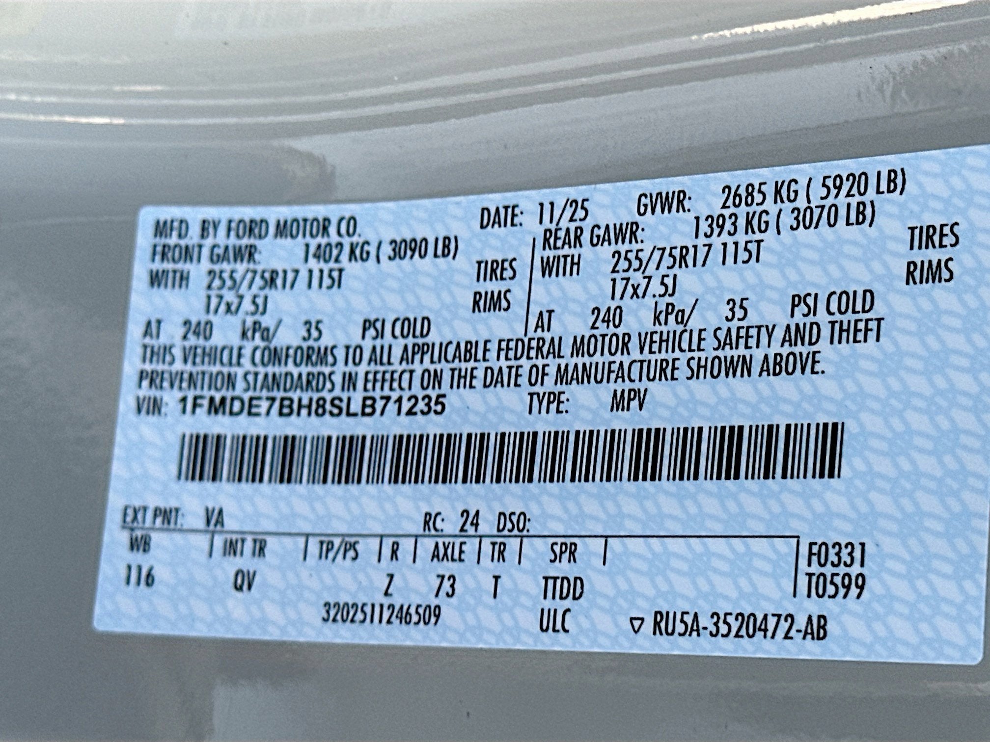 - Gross Vehicle Weight Rating Cap (lbs): 5920