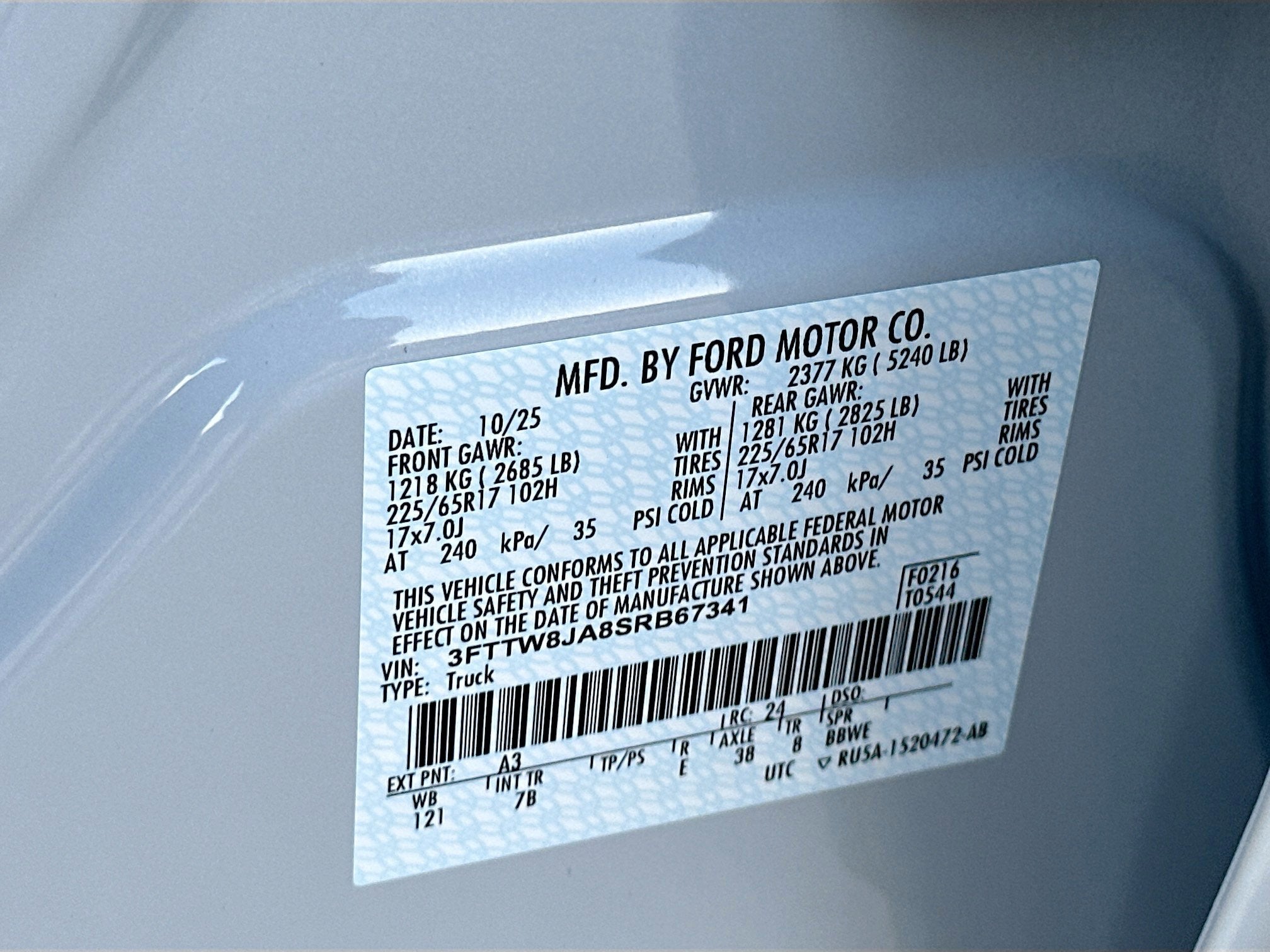 - Gross Vehicle Weight Rating Cap (lbs): 5240