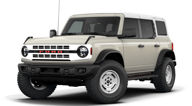 Desert Sand 2026 Ford Bronco Heritage Edition 4WD 10-Speed Automatic 2.7L EcoBoost V6 AM/FM Stereo, Connected Navigation, Equipment Group 662A Mid Package, Ford Connectivity Package (1-Year Included), Plaid Cloth Front Heated Bucket Seats, SiriusXM with 360L, SYNC 4, Wheels: 17 Unique White.