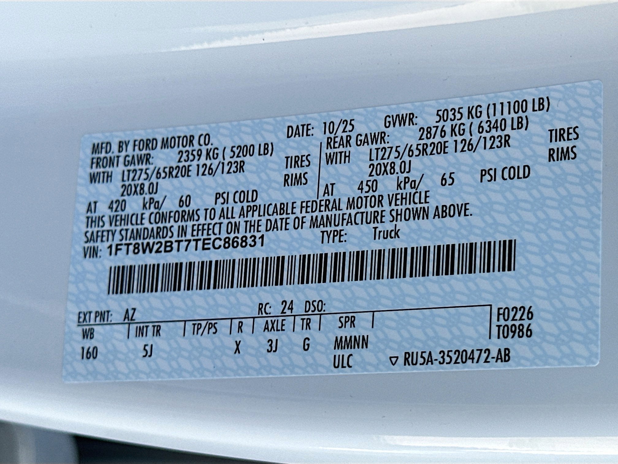 - Rear Tire Capacity (lbs): 6830