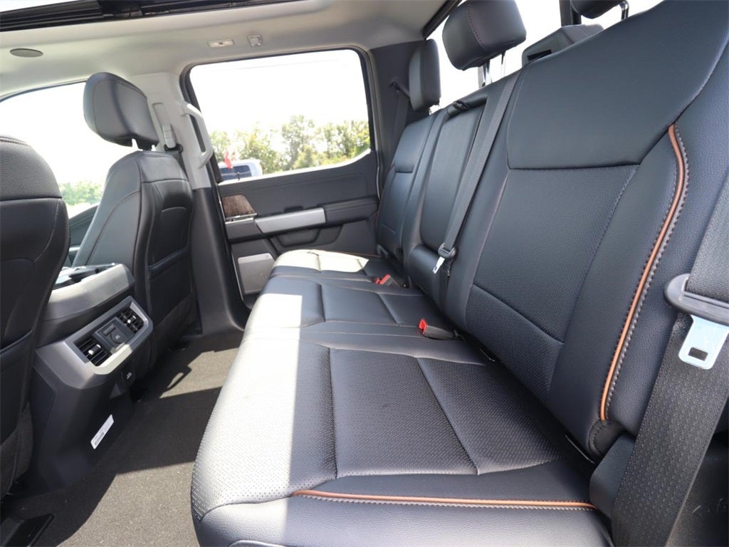 4WD, 4-Way Adjustable Headrests, 5th Wheel/Gooseneck Hitch Prep Package, 6 Ebony Black Angular Running Boards, ABS brakes, Alloy wheels, Black Appearance Package, Black Painted Front Grille Surround, Body Color Front & Rear Bumpers, Compass, Ebony Black Painted Mirror Caps, Electronic Stability Control, Electronic-Locking w/3.55 Axle Ratio, Engine Block Heater, Ford Connectivity Package (1-Year Included), Front dual zone A/C, FX4 Off-Road Package, GVWR: 12,000 lb Payload Package, Head-Up Display, Heated door mirrors, Heated front seats, Heated rear seats, Hill Descent Control, Illuminated entry, Lane Departure Warning System, Lariat Premium Package, Lariat Ultimate Package, Low tire pressure warning, Off-Road Specifically Tuned Shock Absorbers, Order Code 618A, Power-Deployable Running Boards, Power-Sliding Rear-Window w/Defrost, Privacy Glass, Pro Trailer Backup Assist, Pro Trailer Hitch Assist, Radio: B&O Unleashed Sound System by Bang & Olufsen, Rear Wheel Well Liners (Pre-Installed), Remote keyless entry, SecuriCode Keyless Entry Keypad (Driver's Side), SiriusXM w/360L, SYNC 4 w/Enhanced Voice Recognition, Tailgate Step & Handle, Tough Bed Spray-In Bedliner, Traction control, Twin Panel Power Moonroof, Unique FX4 Off-Road Box Decal, Upfitter Switches (6), Wheels: 20 Ebony Black High Gloss.