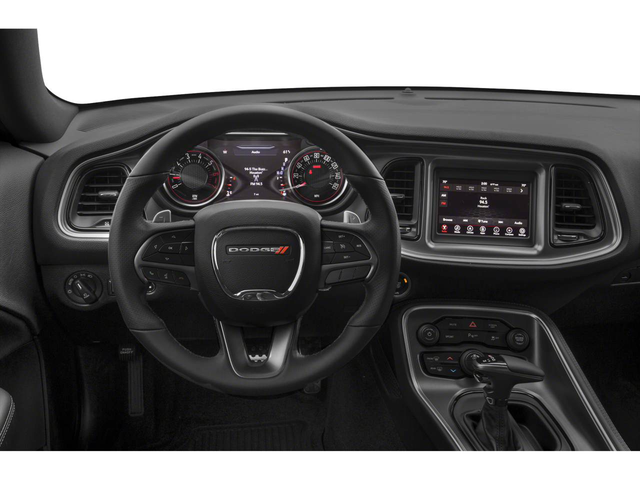4-Wheel Disc Brakes, 5-Year SiriusXM Traffic Service, 5-Year SiriusXM Travel Link Service, 6 Speakers, ABS brakes, Air Conditioning, Alloy wheels, AM/FM radio, Anti-whiplash front head restraints, Apple CarPlay, Apple CarPlay/Android Auto, Auto-dimming Rear-View mirror, Automatic temperature control, Black Fuel Filler Door, Black Grille w/Bezel, Blacktop Package, Blind Spot & Cross Path Detection, Brake assist, Bumpers: body-color, Challenger Blacktop Grille Badge, Compass, Delay-off headlights, Driver Convenience Group, Driver door bin, Driver vanity mirror, Dual front impact airbags, Dual front side impact airbags, Electronic Stability Control, For More Info, Call 800-643-2112, Four wheel independent suspension, Front anti-roll bar, Front Bucket Seats, Front Center Armrest, Front dual zone A/C, Front fog lights, Front reading lights, Fully automatic headlights, Garage door transmitter, Gloss Black I/P Cluster Trim Rings, Google Android Auto, GPS Antenna Input, GPS Navigation, GT Black Grille Badge, Heated door mirrors, High-Intensity Discharge Headlamps, Houndstooth Cloth Performance Seats, Illuminated entry, Integrated Center Stack Radio, Integrated Voice Command w/Bluetooth®, Leather Shift Knob, Low tire pressure warning, Media Hub (2 USB, AUX), Outside temperature display, Overhead airbag, Overhead console, Panic alarm, ParkView Rear Back-Up Camera, Passenger door bin, Passenger vanity mirror, Power door mirrors, Power driver seat, Power Multi-Function Foldaway Mirrors, Power steering, Power windows, Quick Order Package 2EL, Radio data system, Radio: Uconnect 4 w/7 Display, Radio: Uconnect 4C Nav w/8.4 Display, Rear anti-roll bar, Rear Black Spoiler, Rear reading lights, Rear seat center armrest, Rear window defroster, Remote keyless entry, Satin Black Dodge Tail Lamp Badge, Security system, SiriusXM Radio Service, SiriusXM Satellite Radio, SiriusXM Traffic Plus, SiriusXM Travel Link, Speed control, Speed-sensing steering, Split folding rear seat, Spoiler, Sport steering wheel, Steering wheel mounted audio controls, Tachometer, Telescoping steering wheel, Tilt steering wheel, Traction control, Trip computer, USB Host Flip, Variably intermittent wipers, Wheels: 20 x 8.0 Black Noise Painted, Wheels: 20 x 8.0 Satin Carbon Painted.