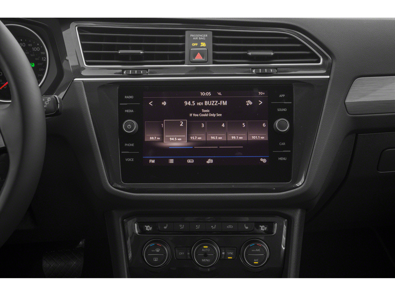 - Radio: MIB3 Composition Media AM/FM/HD -inc: 8" touchscreen, WMA/MP3/FLAC player w/USB-C, voice control, 6-speaker sound system, wireless inductive charger (for compatible devices), App-Connect smartphone integration (w/Apple CarPlay, Android Auto and MirrorLink) via USB, Wireless App-Connect smartphone integration (for compatible devices w/multi-phone pairing capability), capability for in-vehicle 4G LTE enabled Wi-Fi (cellular data plan required; includes limited trial), capability for VW Car-Net services (capabilities for certain services vary; requires enrollment or subscription), Bluetooth® connectivity (for compatible devices) and SiriusXM w/360L (w/3-month All Access trial; 360L services require acceptance of Car-Net terms)