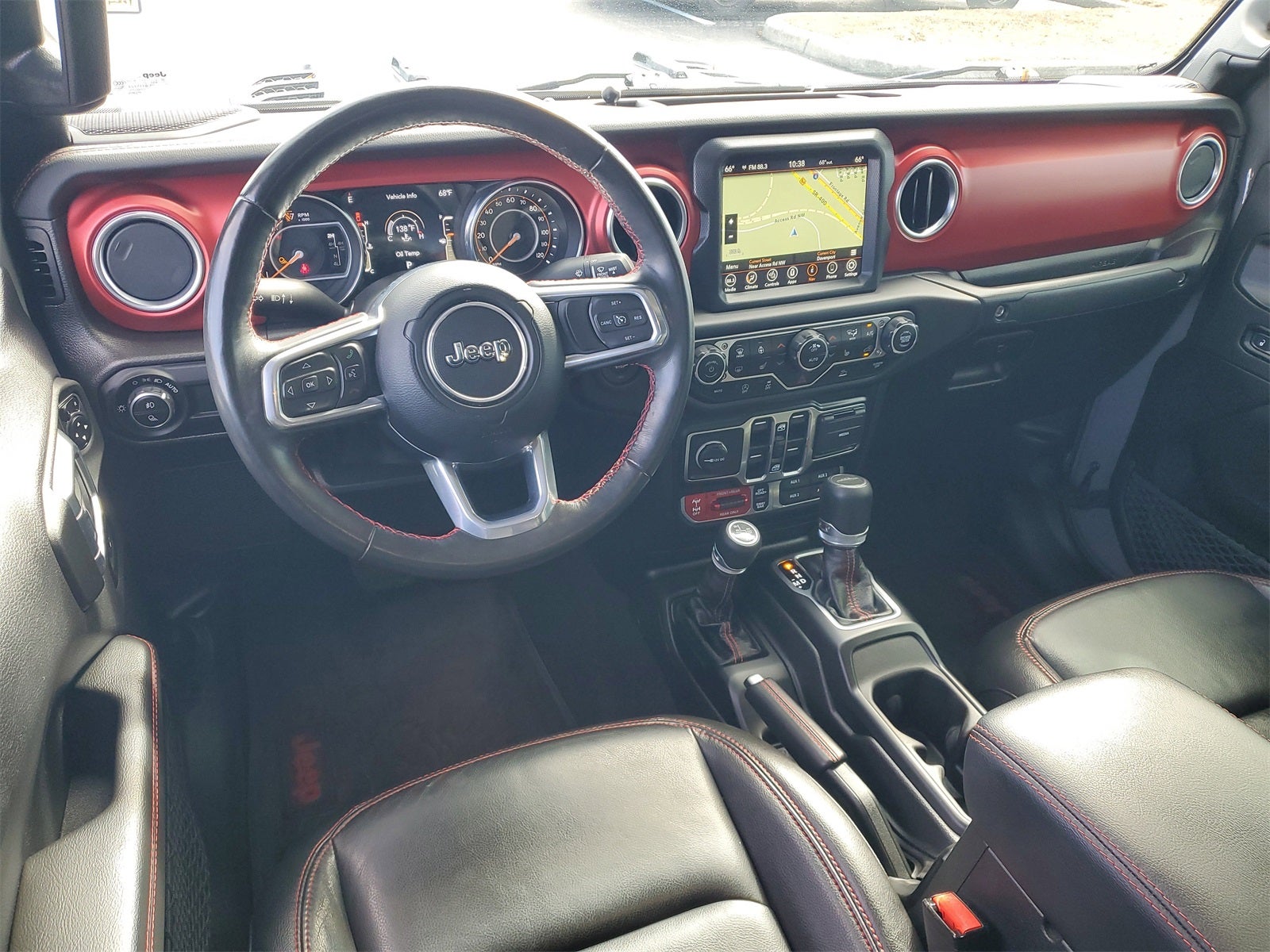 BALANCE OF FACTORY WARRANTY, 240 Amp Alternator, 4-Wheel Disc Brakes, 4.10 Rear Axle Ratio, 9 Speakers, 97 MPH Vehicle Max Speed Calibration, ABS brakes, Air Conditioning, Alloy wheels, AM/FM radio: SiriusXM, Apple CarPlay/Android Auto, Auto-dimming Rear-View mirror, Automatic temperature control, Auxiliary Switch Group, Auxiliary Switches, Body Color 3-Piece Hard Top, Body Color Fender Flares (2-Piece), Brake assist, Class IV Receiver Hitch, Cold Weather Group, Compass, Daytime Running Lamps LED Accents, Delay-off headlights, Driver door bin, Driver vanity mirror, Dual front impact airbags, Dual front side impact airbags, Electronic Stability Control, Emergency communication system, Freedom Panel Storage Bag, Front anti-roll bar, Front Bucket Seats, Front Center Armrest w/Storage, Front dual zone A/C, Front fog lights, Front LED Fog Lamps, Front reading lights, Fully automatic headlights, Garage door transmitter, Heated door mirrors, Heated Front Seats, Heated Steering Wheel, Heavy-Duty Engine Cooling, Illuminated entry, Integrated Off-Road Camera, Integrated roll-over protection, LED Lighting Group, LED Park Turn Lamps, LED Premium Reflector Headlamps, LED Taillamps, Low tire pressure warning, MOPAR Grab Handle Kit, MOPAR Hard Tri-Fold Tonneau Cover, MOPAR Spray In Bedliner, Navigation System, No Soft Top, Occupant sensing airbag, Outside temperature display, Panic alarm, ParkView Rear Back-Up Camera, Passenger door bin, Passenger vanity mirror, Performance Suspension, Power door mirrors, Power steering, Power windows, Premium Cloth Low-Back Bucket Seats, Quick Order Package 24R Rubicon, Radio data system, Radio: Uconnect 4C Nav w/8.4 Display, Rear anti-roll bar, Rear reading lights, Rear Sliding Window, Rear Window Defroster, Remote keyless entry, Security system, Speed control, Split folding rear seat, Steering wheel mounted audio controls, Tachometer, Telescoping steering wheel, Tilt steering wheel, Traction control, Trailer Hitch Zoom, Trailer Tow Package, Trip computer, Variably intermittent wipers, Voltmeter, Wheels: 17 x 7.5 Granite Crystal Aluminum.