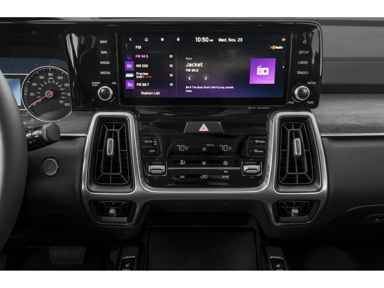 - Radio: AM/FM Audio System -inc: 10.25" touchscreen, navigation, telematics, modem, HD Radio, Bluetooth® w/audio remote control and voice recognition, wired Android Auto/Apple CarPlay, 6 speakers, USB and SiriusXM