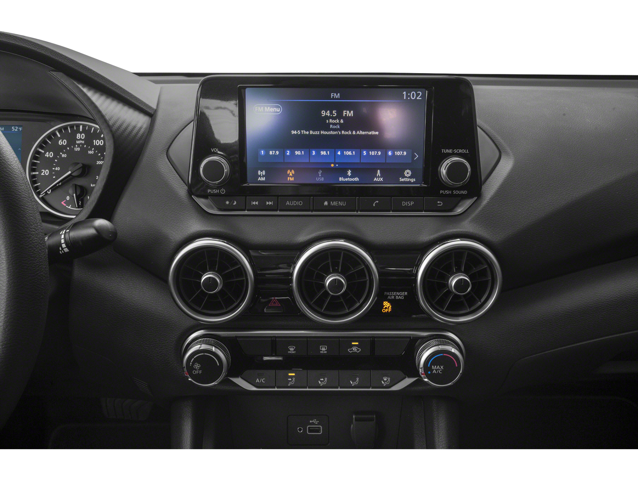 - Radio: AM/FM w/RDS/MP3/Aux-In -inc: 6 speakers plus 2 tweeters in A-pillar, 8" color display w/multi-touch control, streaming audio via Bluetooth, Bluetooth hands-free phone system, hands-free text messaging assistant, Siri eyes free, Google Assistant voice recognition w/Apple CarPlay and Android Auto, NissanConnect, (1) front USB connection port (type A), (1) additional front USB (type C) and (1) charge-only USB (type A) center console and SiriusXM radio w/advanced audio features