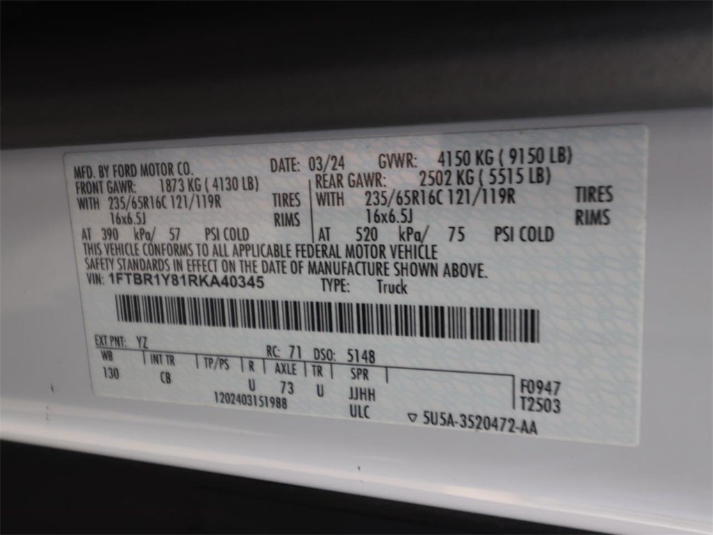 VIN: 1FTBR1Y81RKA40345