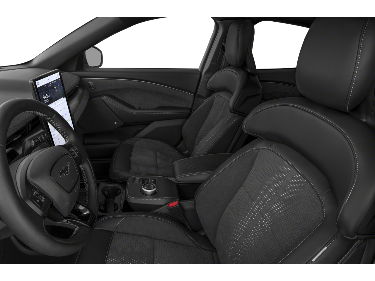 GOLD CERTIFIED, Ford EV Certified Certified, 10 Speakers, 1st & 2nd Row Floor Liners w/o Carpet Mats, 4-Wheel Disc Brakes, ABS brakes, Adaptive suspension, Air Conditioning, Alloy wheels, AM/FM radio: SiriusXM with 360L, Apple CarPlay/Android Auto, Auto High-beam Headlights, Auto-dimming Rear-View mirror, Automatic temperature control, Brake assist, Bumpers: body-color, Cargo Area Cover, Cargo Floor Liner, Cellular Connectivity for Audio/Video Streaming, Compass, Delay-off headlights, Driver door bin, Driver vanity mirror, Dual front impact airbags, Dual front side impact airbags, Electronic Stability Control, Emergency communication system: 911 Assist, Equipment Group 400A Standard Package, Exterior Parking Camera Rear, Ford Connectivity Package (One-Time Purchase), Four wheel independent suspension, Front anti-roll bar, Front Bucket Seats, Front Center Armrest, Front dual zone A/C, Front reading lights, Fully automatic headlights, Garage door transmitter, Heated door mirrors, Heated front seats, Heated Perforated ActiveX Performance Seats, Heated steering wheel, Hood & Decklid Stripe/Door Graphics Delete, Illuminated entry, Interior Protection Package, Internet access capable: FordPass Connect, Knee airbag, Low tire pressure warning, Memory seat, Mobile Power Cord (120V/240V), Mustang Mach-E GT Performance Upgrade, Navigation system: Connected Navigation, Occupant sensing airbag, Outside temperature display, Overhead airbag, Overhead console, Panic alarm, Passenger door bin, Passenger vanity mirror, Power door mirrors, Power driver seat, Power Liftgate, Power passenger seat, Power steering, Power windows, Radio data system, Radio: B&O Sound System by Bang & Olufsen, Rain sensing wipers, Rear anti-roll bar, Rear seat center armrest, Rear side impact airbag, Rear window defroster, Rear window wiper, Remote keyless entry, Security system, SiriusXM w/360L, Speed control, Speed-sensing steering, Speed-Sensitive Wipers, Split folding rear seat, Spoiler, Steering wheel mounted audio controls, SYNC 4A w/Enhanced Voice Recognition, Telescoping steering wheel, Tilt steering wheel, Traction control, Trip computer, Turn signal indicator mirrors, Variably intermittent wipers, Wheels: 20 Monochromatic High Gloss Black-Painted.